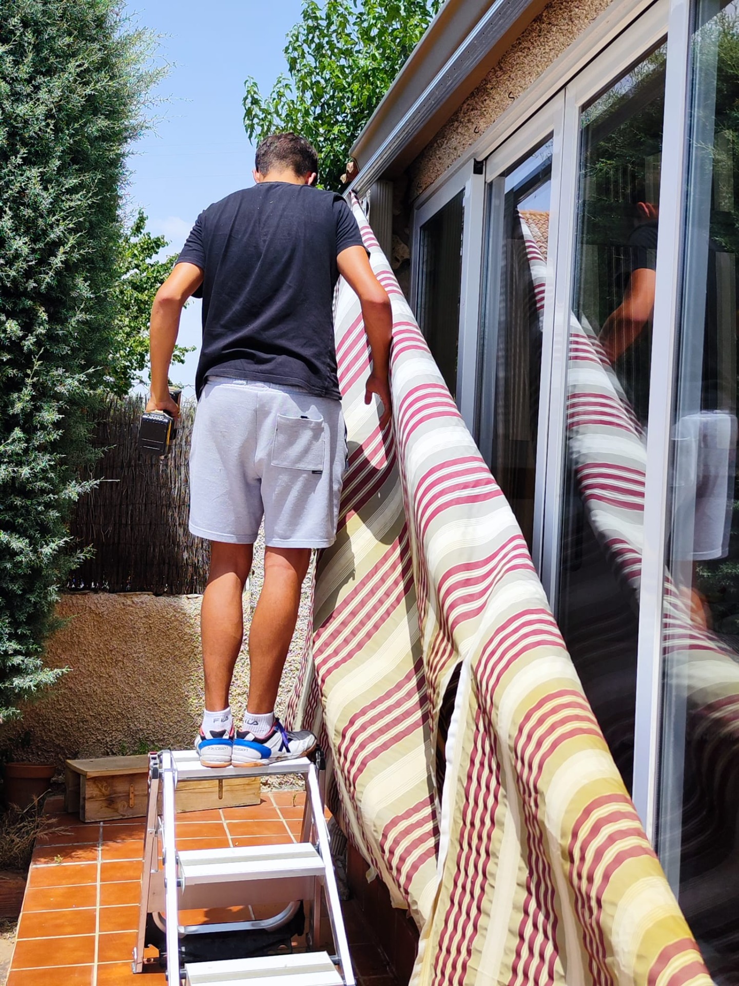 En Toldos Olías del Rey realizamos el cambio de lona de tu toldo con materiales de alta calidad, garantizando un acabado perfecto y renovando por completo la imagen y protección de tu espacio. Trabajamos a medida y ofrecemos una instalación rápida, limpia y profesional.
